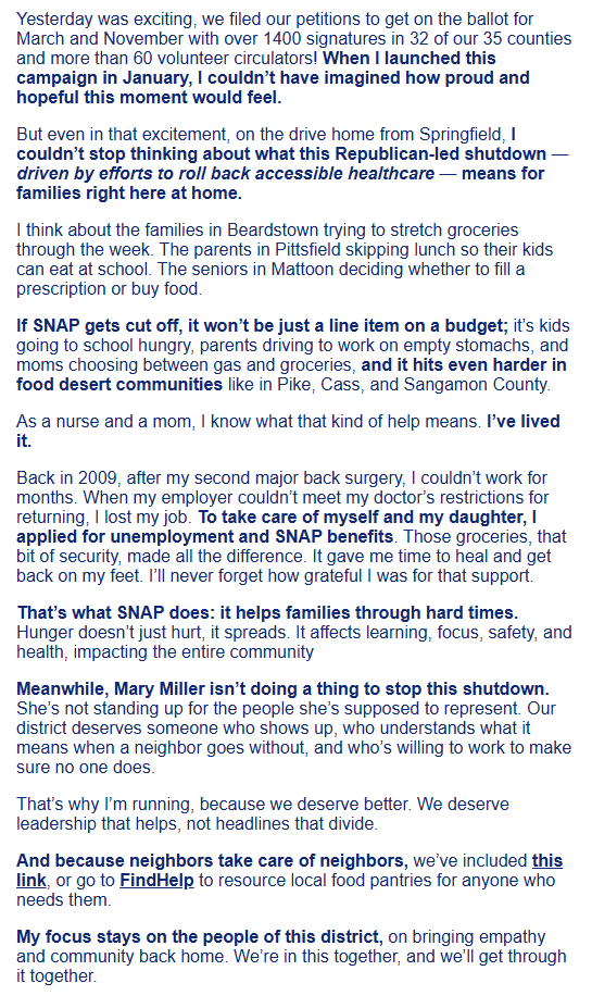 - October 30, 2025 Congressional News Release: “Illinois Congressional Republicans Urge End To Democrat Shutdown”.